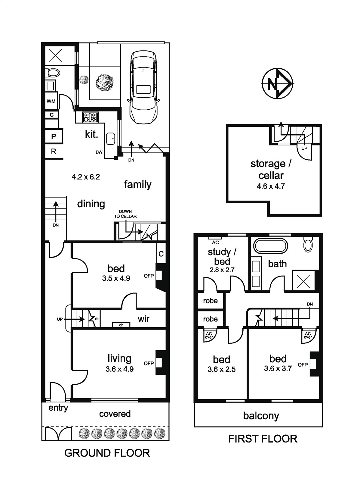 northern wall of the property, so as to open it internally with a plan which brings the dining area into the kitchen – inspired by French provincial kitchens. We opened it to the outside through tall, retractable, cedar doors, a light well to the cellar and three stained glass windows. These produce light which is reminiscent of the heritage stained-glass above the front door. They can also be opened electronically, for extra air flow. We revamped the downstairs laundry/WC – to turn it into a bathroom and laundry. We rebuilt the back wall of the property and added a roller door to a courtyard that can support a medium sized car if needed. We installed central heating and cooling downstairs, linked split systems in each of the three upstairs bedrooms, and a security system with remotely-accessible cameras. New plain windows are double glazed and protected from the summer sun by electronic 95% awnings (allowing a clear view out while excluding heat and glare). Heritage sash windows were all rehung to make them easy to use and with brushes added to exclude draughts and avoid rattles. Inside, you will be snug in winter and cool in summer.