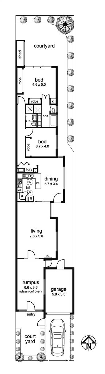 Comprising two bedrooms with built in robes, two bathrooms (luxury spa ensuite with floor-to-ceiling tiling) plus a classic kitchen with breakfast bar/adjoining dining, an impressively large living area and separate glass roofed rumpus room. Add to this, European laundry, rear shed, split system heating/cooling and easy off-street parking via single garage and driveway.