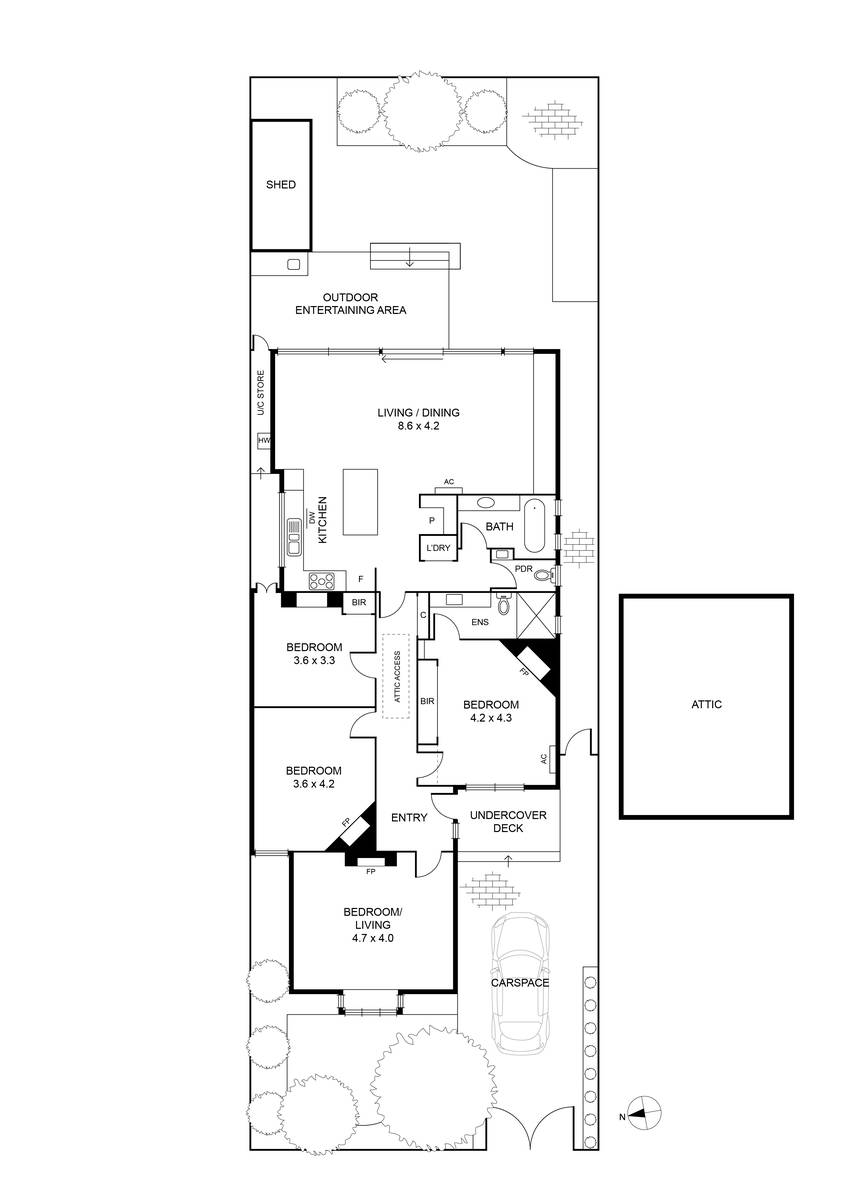 - Additional highlights include original period features such as high skirting boards, decorative architraves, crown moulding and period-style doors, high ceilings, hydronic heating, split system heating/cooling, timber flooring throughout, and ample storage options, with a huge fully lined attic storage and two outdoor storage areas