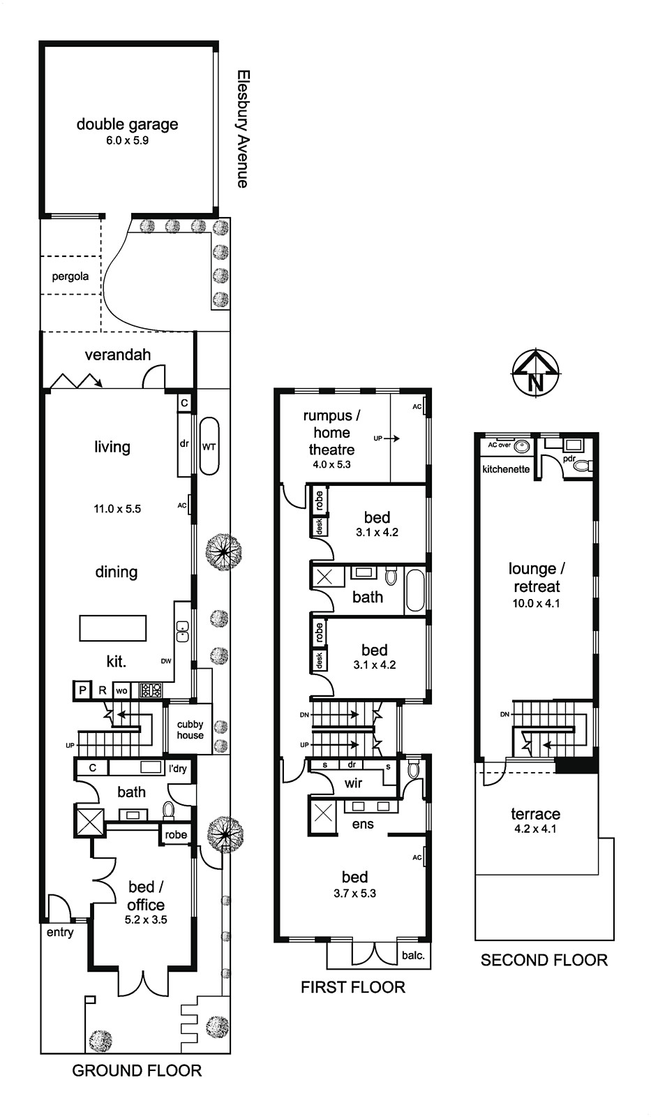 This exceptional home boasts a double garage with easy laneway access, showcasing polished concrete and recycled Baltic floors, double glazing, abundant storage options, hydronic heating, split-system air conditioning, an audio system, comprehensive cabling, an alarm system, a central vacuum unit, and a 2000- litre grey water system.