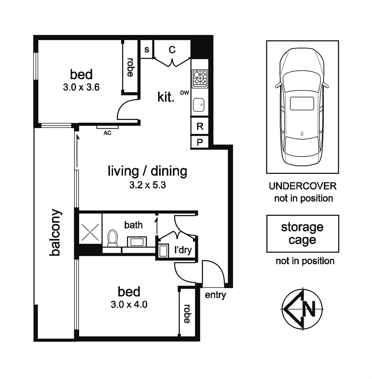 - Two generous, carpeted bedrooms, each with built-in robes.