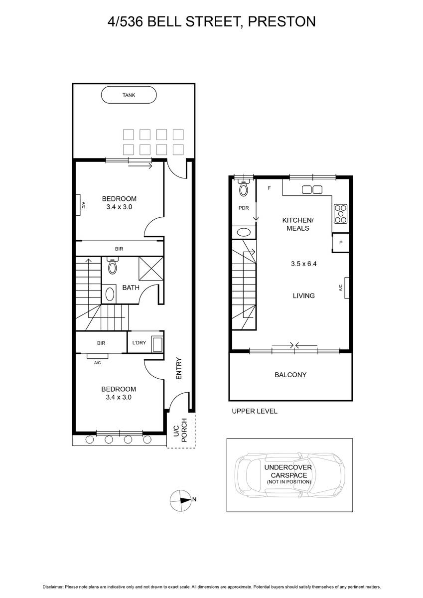 Step into contemporary living at its finest with this exquisite townhouse on Bell Street. Nestled in a boutique development, this residence offers a remarkable two-level floorplan, an array of modern features, and a flood of natural light that bathes every corner. The home's interior is designed to impress with two generous bedrooms, each adorned with built-in robes. A convenient European laundry and on-trend central bathroom featuring a stone-top vanity, rain-head shower, and floor-to-ceiling tiles, completes the lower level of this abode. Upstairs, an open plan living/meals area seamlessly connects to the adjoining kitchen, where 40mm stone benches, ample cupboard space, a dishwasher, and 900mm cooking appliances are sure to delight. The soft-close cabinetry and double-glazed windows elevate the overall quality, with oak flooring throughout. Enjoy comfort year-round with split-system heating and cooling in the living area and both bedrooms. Create your own outdoor sanctuary on the large balcony that extends from the living area, or retreat to the private rear courtyard-an ideal space for relaxation. The convenience of an undercover parking space accessed via the rear laneway ensures secure parking. Nestled in the popular Preston neighbourhood, this residence allows easy access to Gilbert Road trams, Bell Station, a choice of bus routes, High Street cafes, and a vibrant retail precinct. Enjoy local parks and the renowned Preston Market, both within walking distance. Don't miss the opportunity to make this perfect townhouse your own!