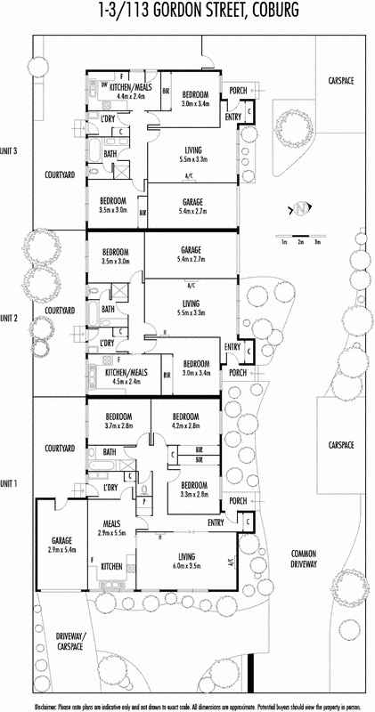 An investors and investor/occupiers dream, these spacious and well-appointed villas present an extremely rare and exciting investment opportunity - one tastefully renovated and two to rent as is with scope to enhance. Each abode features two bedrooms (unit 1 has 3BR), central bathroom, spacious lounge and kitchen/meals, separate laundry, as well as split-system heating/cooling, private courtyard and lock-up garage. Units 1 and 2 are in neat original condition while the rear villa boasts a superb renovation highlighting polished hardwood floors, alarm system, stylish kitchen with Blanco appliances as well as a much larger L-shaped courtyard. Excellent rental returns, capital growth and value-adding sub-division potential combine to make this unique property the investment opportunity of the year - superbly located in one of Coburg's premier pockets easy walking distance to buses, trams and schools, plus easy access to Citylink, Coburg Station, Sydney Road shops and cafes.