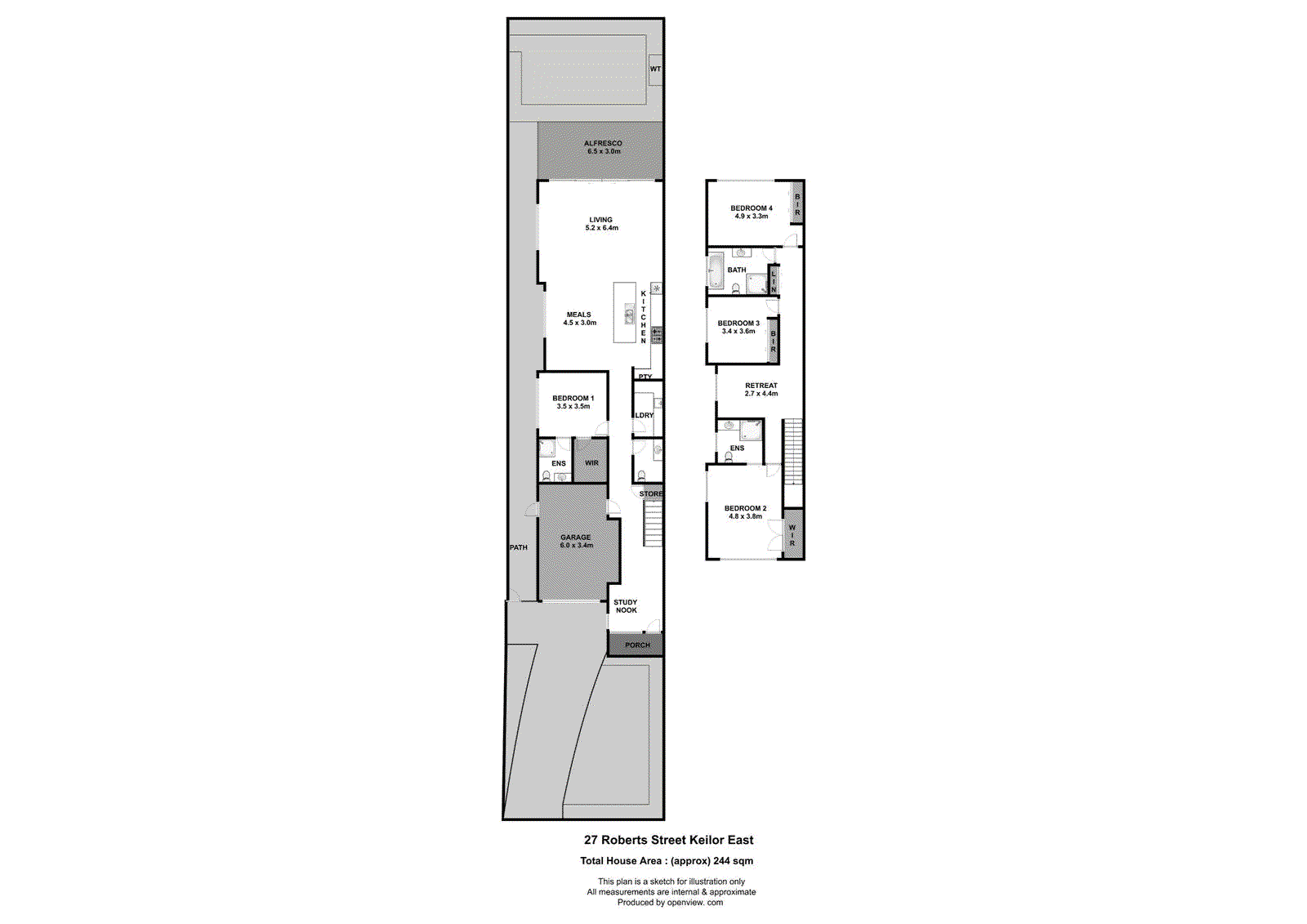 With its harmonious mix of architectural flair, design excellence and uncompromised quality, this home presents an exceptional modern family lifestyle opportunity positioned to perfection in one of Keilor East’s premier pockets. Beautifully appointed and meticulously detailed interior showcases four large bedrooms (alternate masters on each level), together with two deluxe ensuites and equally-stylish main bathroom – all with floor-to-ceiling tiles. Add to this a front study alcove, lounge/retreat (upstairs) and wonderfully spacious open-plan living/dining area which is further enhanced by a first-class kitchen complete with stone benchtops and island breakfast bar, tiled splashbacks, ample cupboard space, Bosch appliances (dishwasher, oven and 900mm gas cooktop) and Schweigen rangehood. High square-set ceilings across both levels, and split-system heating/cooling throughout, this stunning home also features an alarm system and video intercom, excellent storage options, full-size laundry and guest powder room (fourth WC), soft-close cabinetry throughout and double-glazed windows all-round. Completing the picture is an al-fresco entertaining deck and private back garden, plus remote-control garage with internal entry and additional driveway parking. A short stroll to the open spaces of Rosehill Park, Phillip Road/Buckley Street buses and Milleara Shopping Centre, it’s also close to a range of primary and secondary schools (including PEGS and St Bernard’s College), as well as easy access to the Calder Freeway and Ring Road.