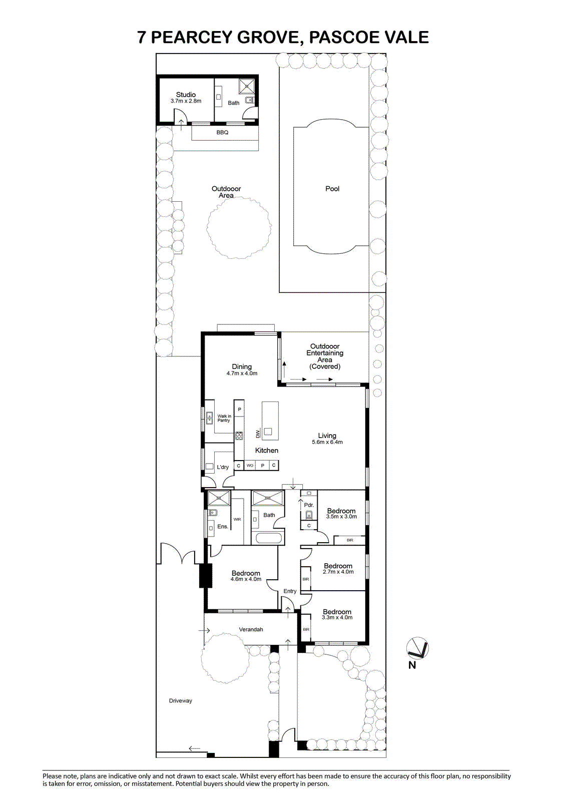 Large stacker doors reveal a bluestone-paved alfresco area and deep backyard including mains-connected BBQ, 10m x 5m pool (heat pump, chemical free) and poolside bathroom, plus a versatile studio/home office and multiple off-street parking spaces.
