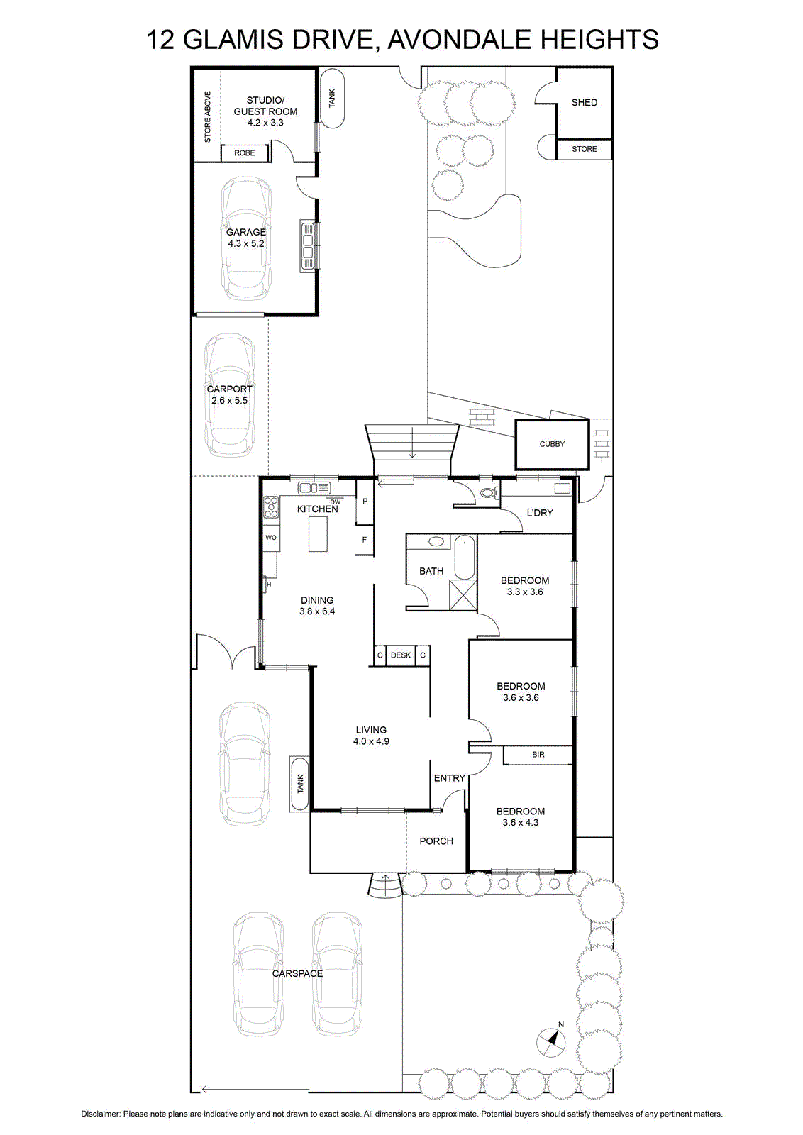 Other highlights include ducted heating/ evaporative cooling throughout and ceiling fans (all bedrooms), polished hardwood floors, a dedicated study nook, security shutters all-round, plus a sunny north-facing backyard, studio / guestroom. Garage plus carport via electronic gated driveway.