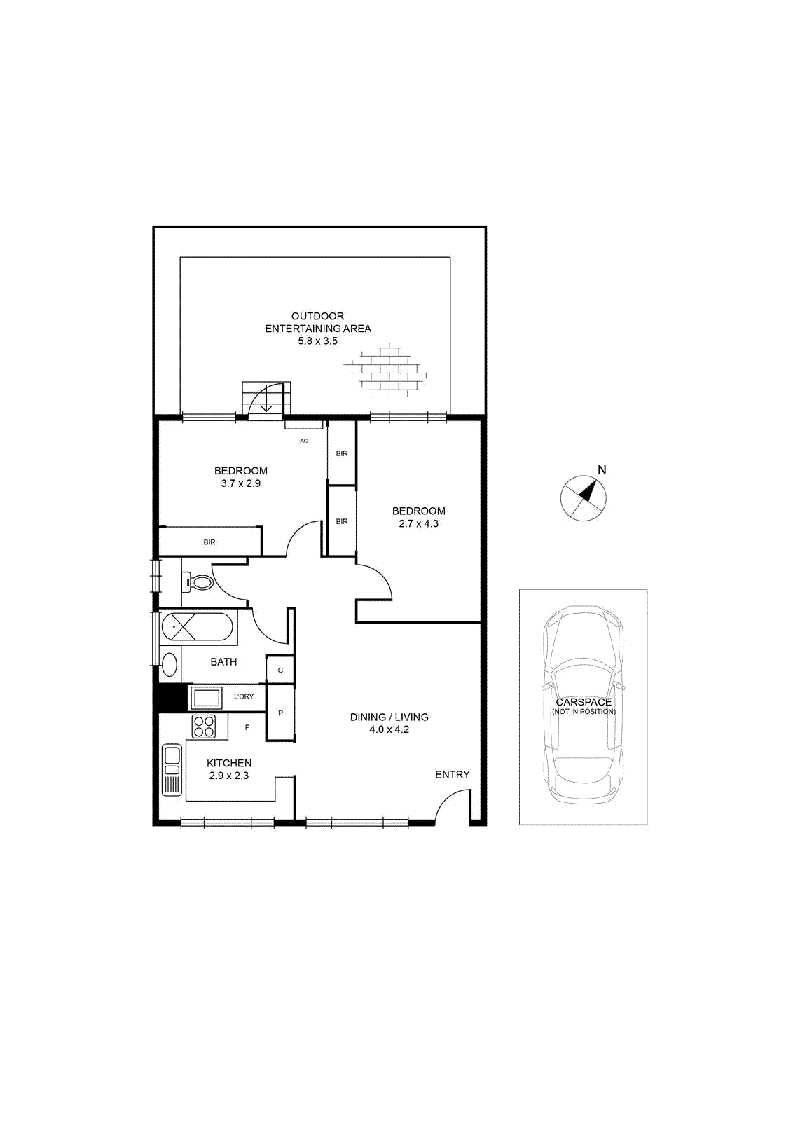 Step inside to discover an impeccably-presented interior comprising two bedrooms (large main) with built-in robes both sharing a stylish central bathroom with stone-top vanity and shower/tub combo.