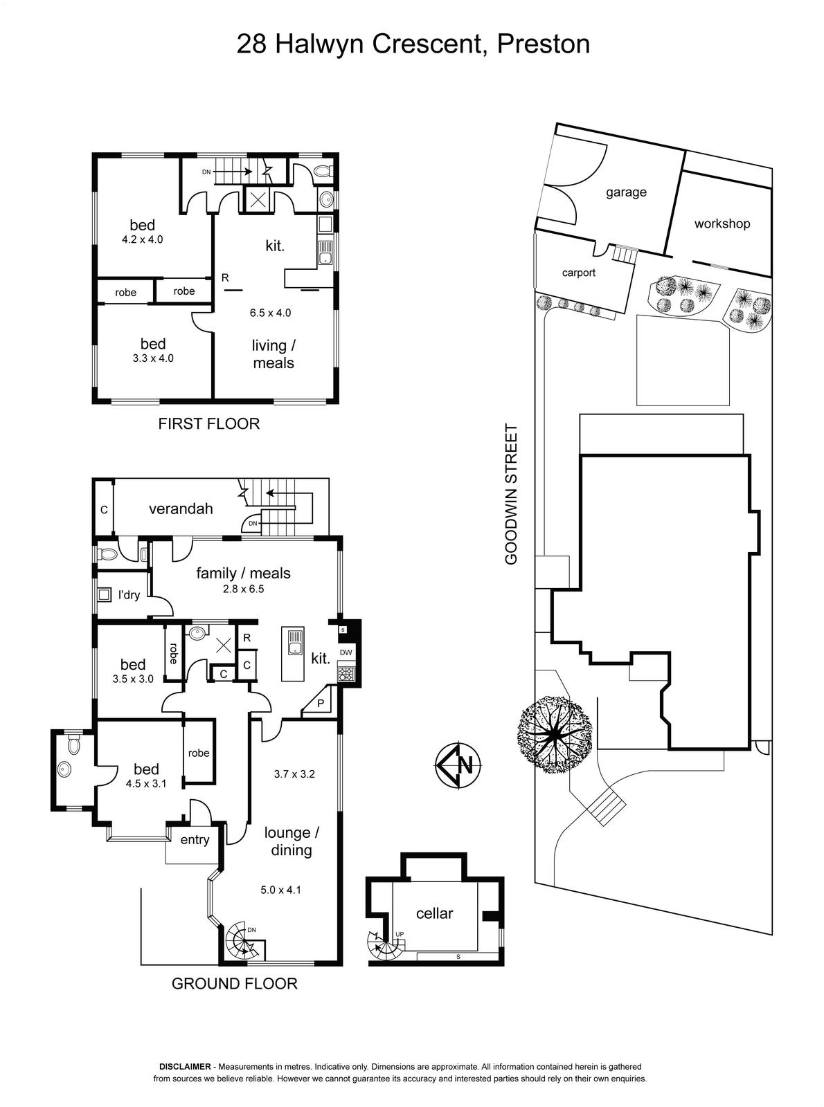 Other features of the home include heating, cooling, cellar/storeroom and city glimpse from upstairs, plus a sizeable backyard with undercover patio, powered workshop, garage and carport – both accessed via Goodwin Street.
