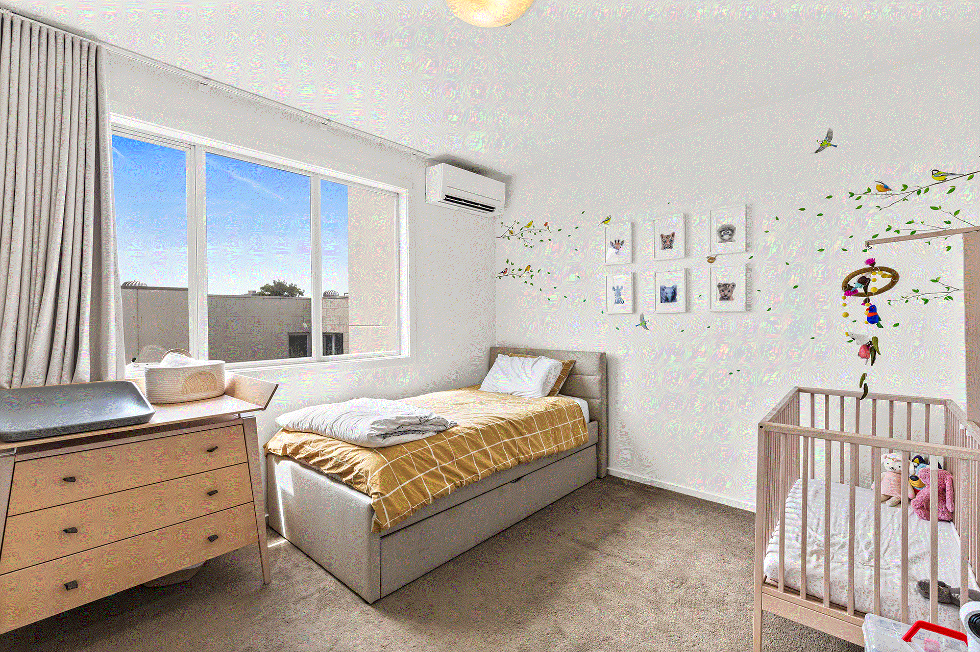 Lower level featuring light-filled open-plan living, stylish kitchen with near new Miele appliances opening to a sunny North facing paved private courtyard. Upstairs featuring: two sizeable, robed bedrooms, master with separate balcony overlooking city views, central bathroom, plus the bonus of a downstairs laundry and separate second toilet . Extra features include parquet floors, split system air conditioning in each room, intercom entry, and basement car parking for two vehicles and storage cage. All within walking distance to local cafes, restaurants, Gertrude Street nightspots, trams, and Fitzroy gardens. A MUST INSPECT