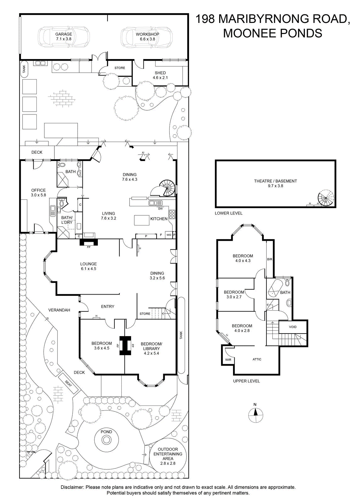 Bi-folds from the living area reveal a sunny north-facing backyard garden with extensive brick paving, raised veggie patches and 7,000 litres worth of watertanks, plus a workshop/storeroom and remote-control tandem double garage to Darling Street.