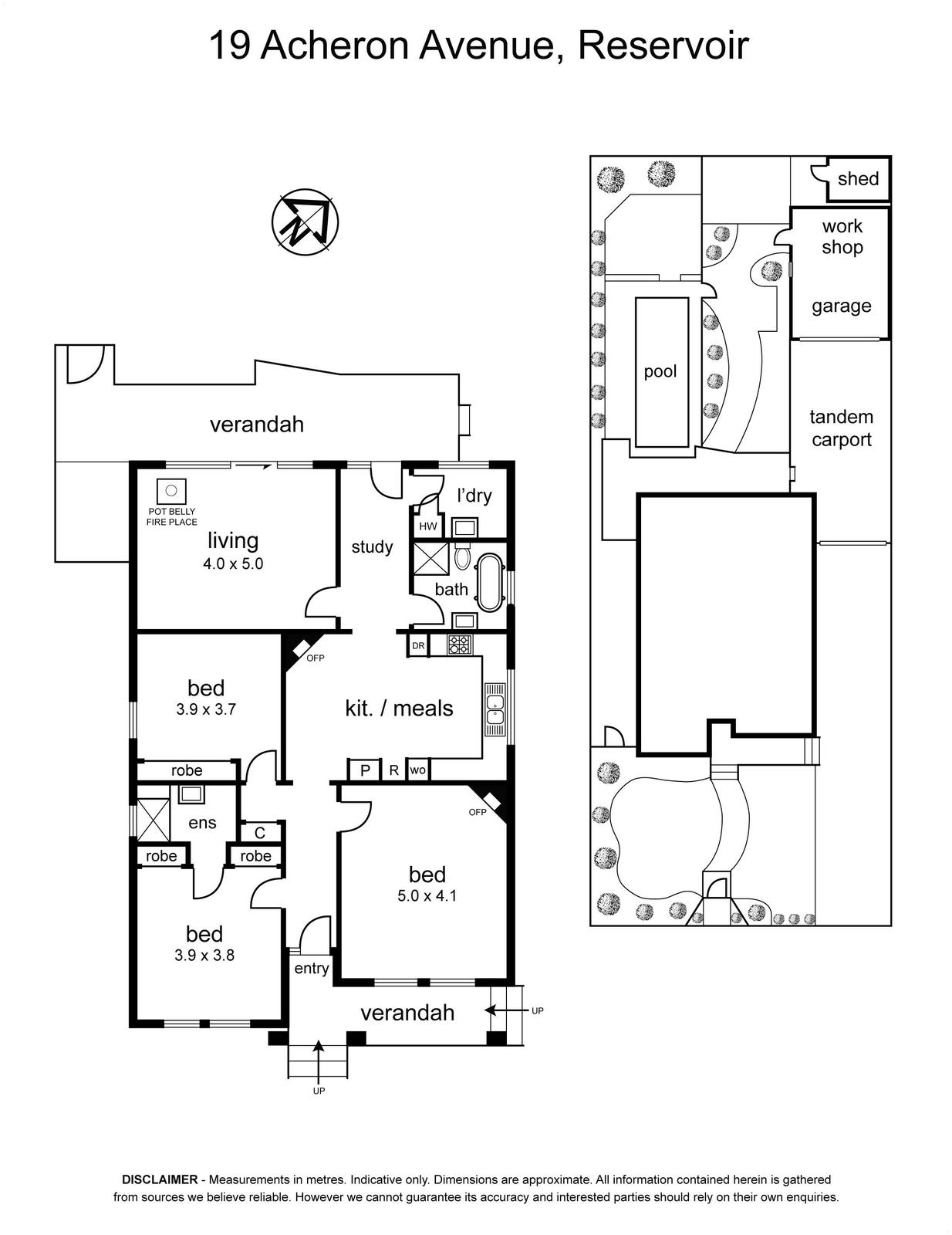Additional features include heating and cooling, floorboards throughout, tandem carport, garage with workshop and additional shed space.