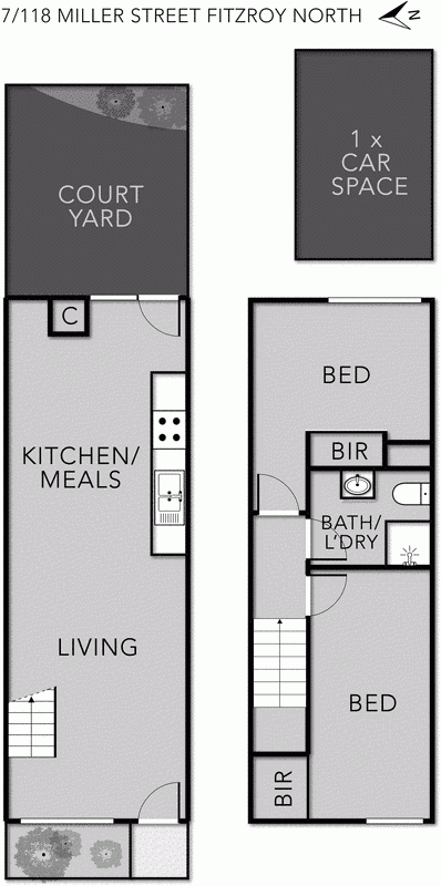 This edgy town house, in a small block of 8 is close to the vibrant Nicholson St and St Georges Rd shopping and eateries. Tram routes and Merri Creek are at your finger-tips which offers well-designed low maintenance living. Comprising an open plan spacious living and dining area with polished concrete floors flowing to a tranquil courtyard with northerly light. Neat functional kitchen, two double bedrooms (BIRs) and central tiled bathroom/laundry, plus designated parking space. Inspection is a must!