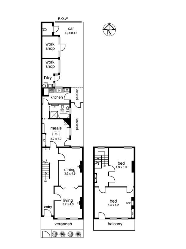 Here is a rare opportunity to restore a grand balcony terrace to its former magnificence! With a tall pedimented and pillared facade, this distinguished property retains ornate cornicework and other Boom-period detail, and is superbly located just around the corner from Brunswick Street and only 10 minutes from the CBD. From an impressively wide entrance hall open high-ceilinged living and dining rooms, linked by folding panelled doors. To the rear of the house are a large dining area, functional bathroom and kitchen. The deep north-facing courtyard has access to a right-of-way. A handsome balustrade staircase ascends to the main balcony bedroom - vast by any standard - and a second double bedroom. There's work to be done, but the potential is unlimited. (Zoning: Business 2) Agent: Nelson Alexander Pty Ltd