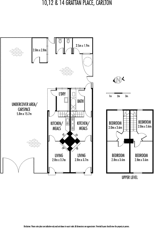 Here is a piece of Carlton history! In original condition, these two linked terraces (ca 1870) behind a classic facade and a large garage site with deep courtyard are ripe for redevelopment (STCA), with single title and large land (11x16m approx) in a prime CBD-edge location metres from tranquil Argyle Square, Lygon Street and Melbourne University. Each residence comprises 2BRs, living room and utility areas, with access to a deep courtyard and outbuildings. The choices are exciting: for one or more contemporary residences plus off-street parking. Nelson Alexander Pty Ltd