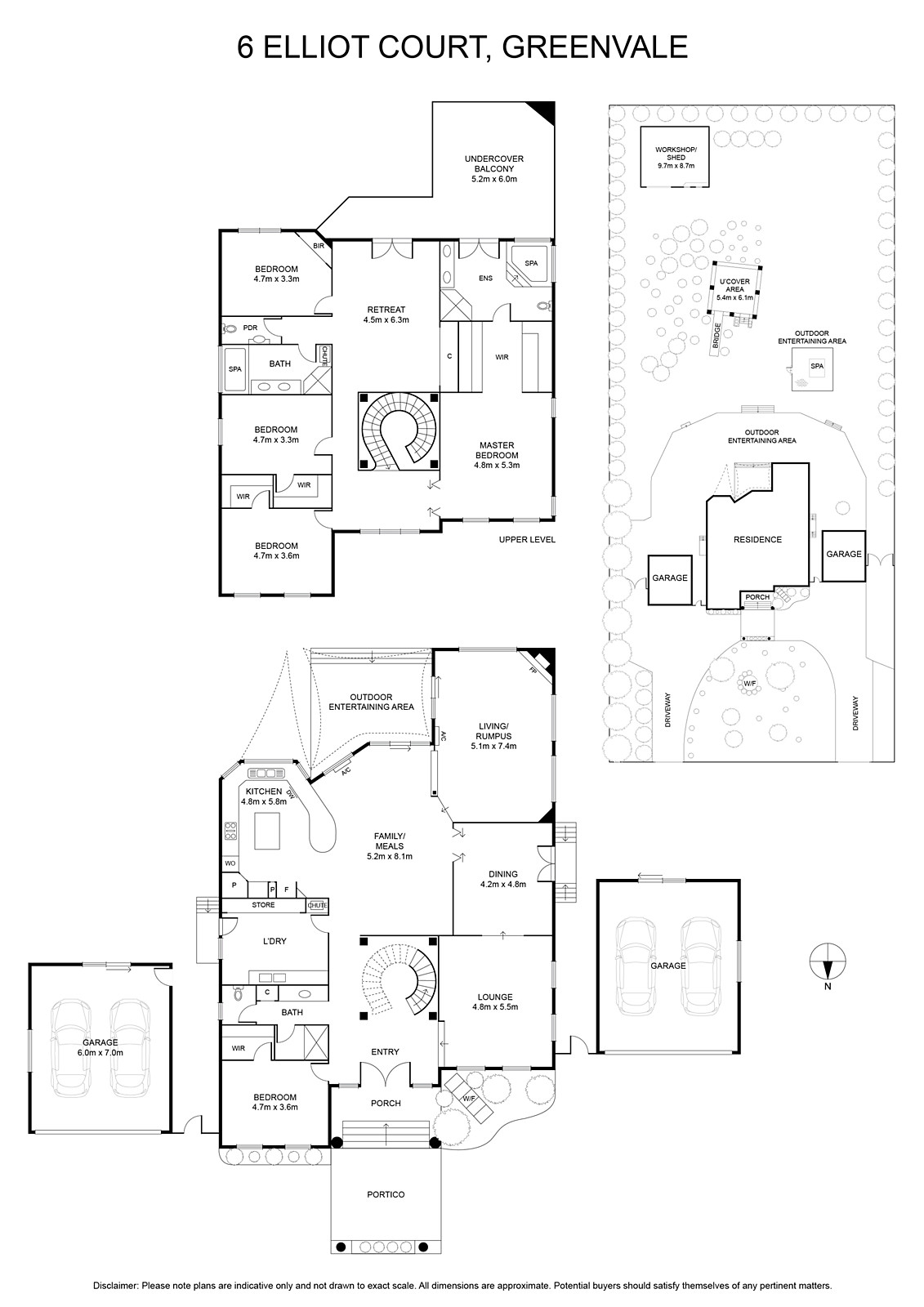 With its elegant architecture, grand proportions and extensive features list, this prestigious home presents an opulent environment of quality and versatility on approximately 4000sqm of land in an exclusive Greenvale cul-de-sac. Impressively bold yet warmly inviting, the home's sumptuous interior boasts a grand entrance foyer with curved staircase and stunning chandelier, five bedrooms (extra-large master with WIR and spa ensuite) and two additional bathrooms (one on each level). Multiple living zones and elegant formal lounge and dining, retreat (upstairs) out to large undercover terrace, rumpus/living room with open fireplace, as well as an expansive open family/meals area complemented by a granite-bench kitchen with breakfast bar. Other highlights of the home include heating and cooling throughout, ducted vacuum, alarm and intercom, quality tiling and window furnishings, large laundry and excellent storage spaces. Step outside to an enormous backyard with paved entertaining area, gazebo, established gardens all-round, large workshop, plus two double garages and two gated driveways - all remote-controlled. A prized location, it offers easy access to public transport, trails and parkland, Greenvale Shopping Centre, as well as popular primary/secondary schools and major arterials - a lifestyle opportunity like no other!
