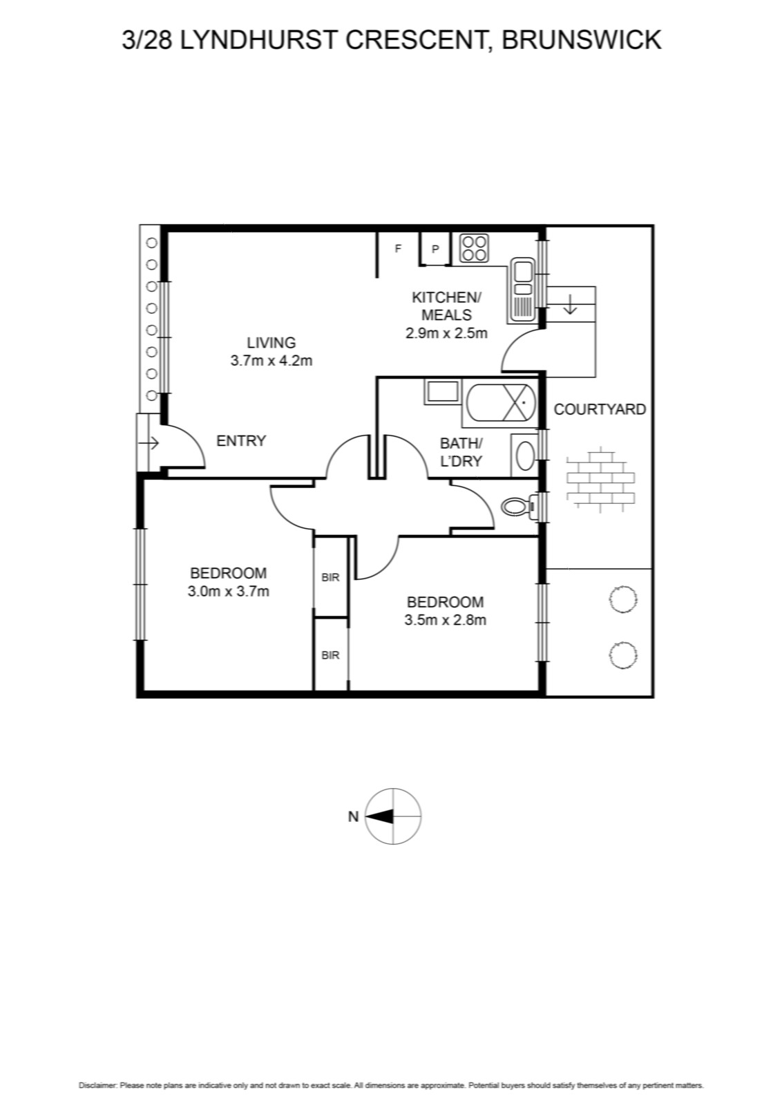 Attention first home-buyers and investors! In a block of only 5, this comfortable villa with wonderful scope for enhancement is an unmissable opportunity. In a cul de sac metres from Allard Park and close to Lygon and Nicholson Street trams and East Brunswick cafes, it offers two double bedrooms (BIRs), a spacious living/dining room filled with northerly light, neat updated kitchen, bathroom/laundry and separate WC. With polished floorboards, this exclusively positioned home includes a private courtyard and on-title parking.